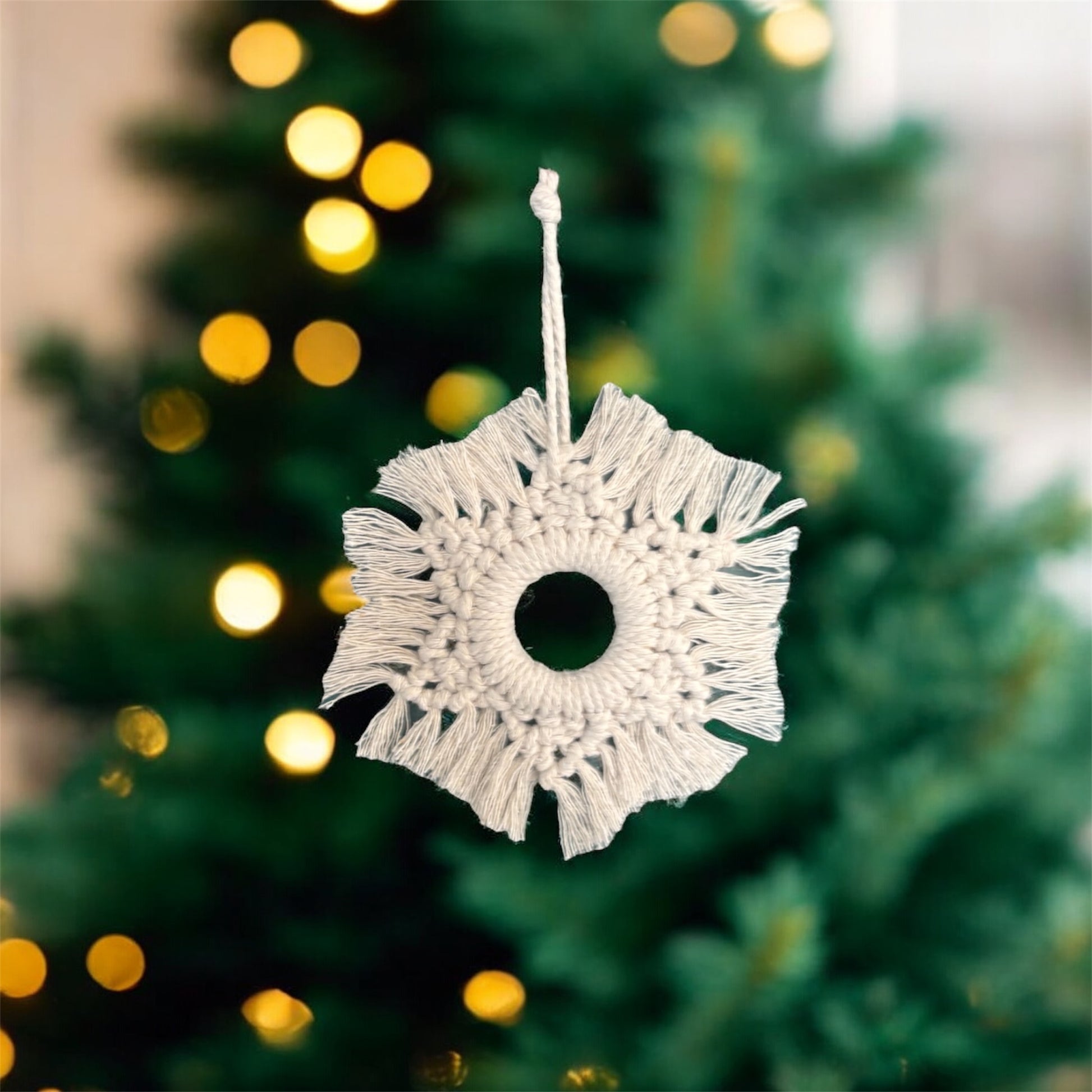 Réalisé en corde de coton naturelle, ce flocon allie douceur et authenticité pour une décoration de Noël au style bohème et chaleureux.